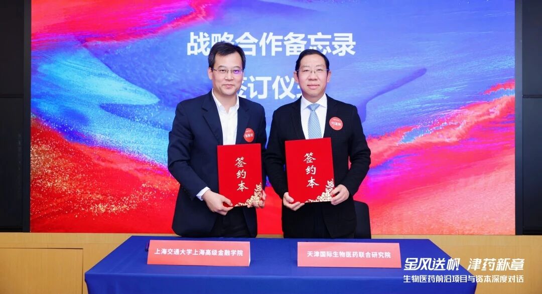 活动期间,津药联合院与上海高金签署战略合作备忘录。根据约定,双方将通过投融资对接、人才培养和举办论坛等活动,为生物医药领域和高校科研团队的创新成果转化提供全方位支持。